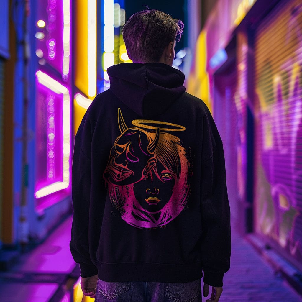 This warm fleece-lined hoodie has quite a fitted/slim cyberpunk style. Your regular size will most likely fit, but if you want to go for a more baggy, relaxed, or comfortable look, we suggest taking one size larger.