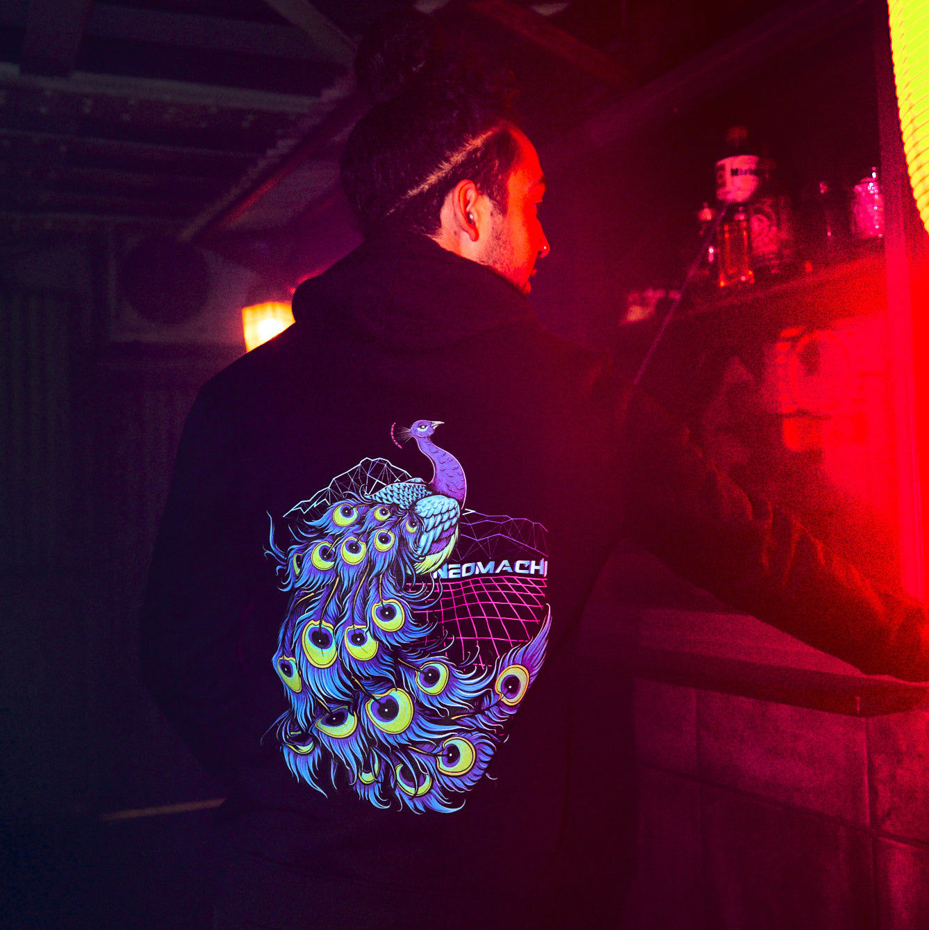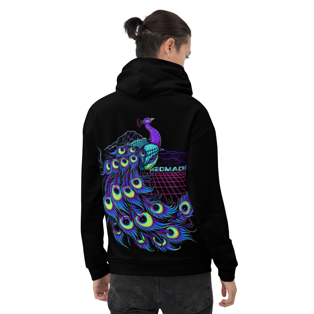 Prepare to be dazzled by the KUZAKU design. This cyberpunk peacock struts its feathers with elegance and flair, bringing a whole new level of futuristic fashion to your wardrobe. With its "higher" style, you'll be the envy of every high-tech aviary. This design is also available in a T-Shirt and Sweater version.