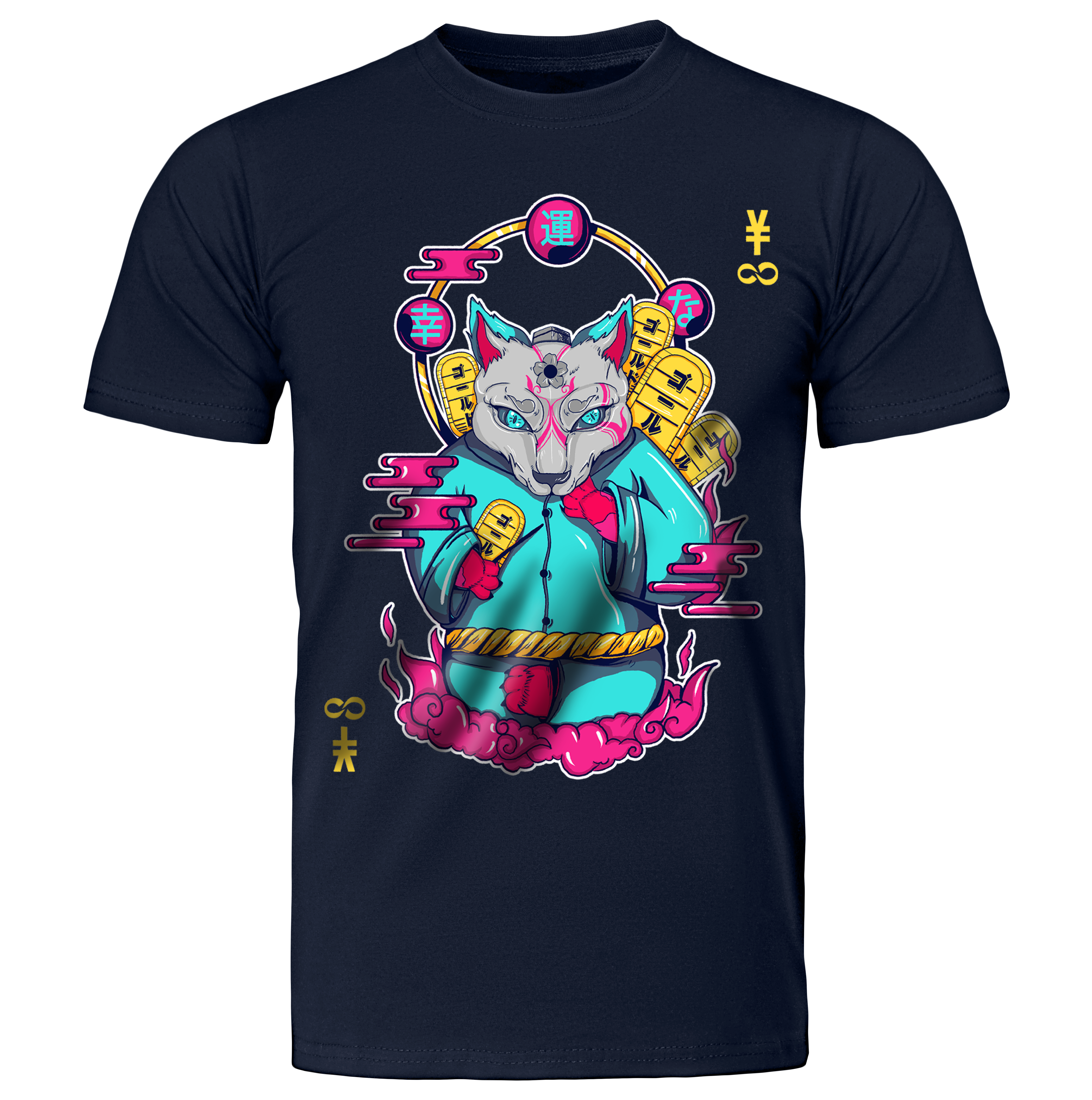 This tee features a fitted/slim cyberpunk style. Your regular size should provide a good fit, but if you prefer a more relaxed or comfortable look, we recommend choosing one size larger. Stay stylish and fortunate with our MANEKI-NEKO design!