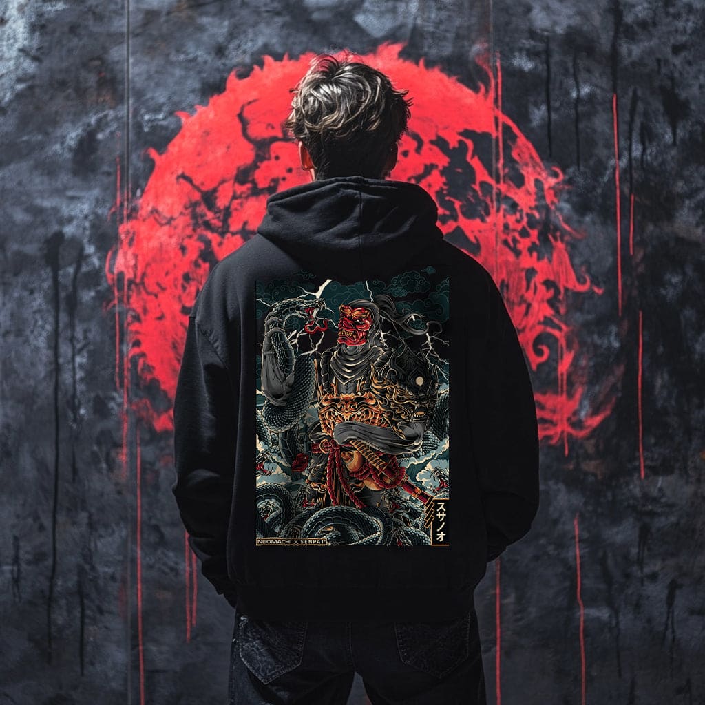 Unleash the power of SUSANOO, a design inspired by the legendary storm god of Japanese mythology. Intricate patterns and vibrant colors bring to life the legendary Susano’o, showcasing a powerful dance between myth and reality. Also available on a t-shirt and sweater.