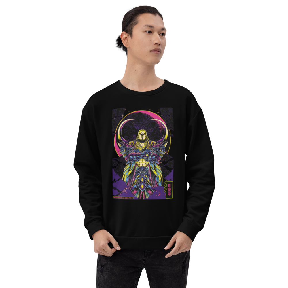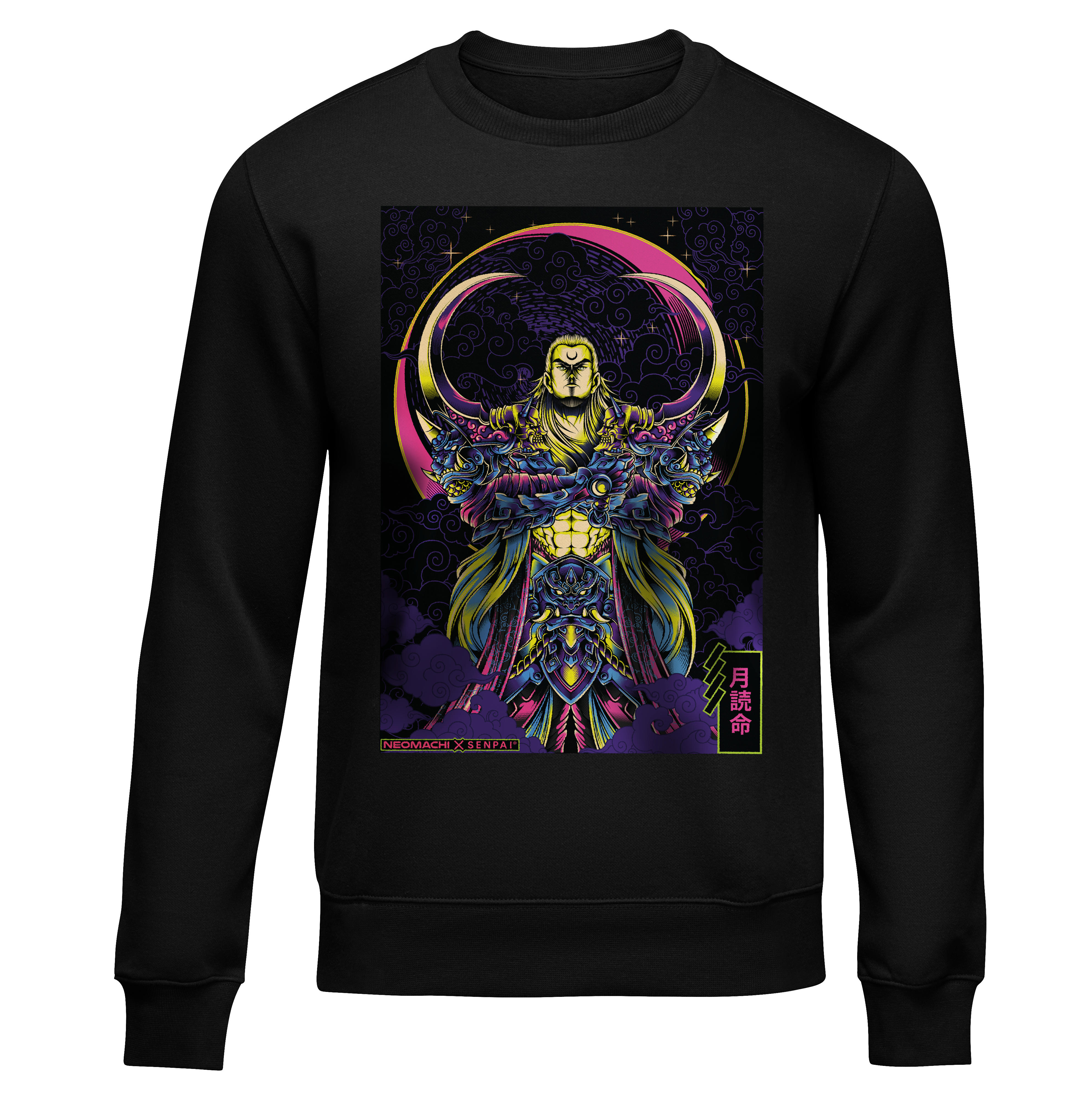 Tsukuyomi-no-Mikoto is the Japanese moon god. Tsukuyomi has been in a fight with Amaterasu (goddess of the sun) since the dawn of time, which is why day and night never co-occur. This design is also available in a hoodie and t-shirt version.